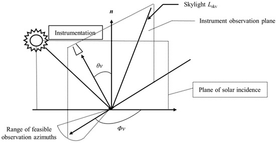 In addition, the remotely sensed reflectance spectra on the water surface from 350 to 1000 nm (at 1 nm intervals) were measured using a spectral sampler (ASD FieldSpec 4 Hi-Res) according to the scheme proposed by Mobley et al. [41]. As shown in Figure 4, the remotely sensed reflectance was determined using the over-water method proposed by Tang et al. [42] with an observed azimuth angle of Φv = 135° and an observed zenith angle of θv = 40°.