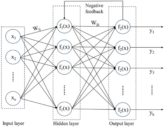 An example of a single hidden layer structure is illustrated in Figure 7. The specific computational process is as follows: Feature variables are initially input from the left side of the network. These values undergo weighted summation and bias adjustments as defined in Equation (3), then pass through a nonlinear activation function (Equation (4)), providing input values to the hidden layer neurons. The hidden layer processes these values according to Equation (5) and subsequently applies another activation function (Equation (6)) before transferring them to the output layer, where the predicted outputs are generated. Finally, the error backpropagation mechanism adjusts the weights and biases based on the mean square error (MSE) between predicted and observed values, enhancing the model’s predictive capacity.