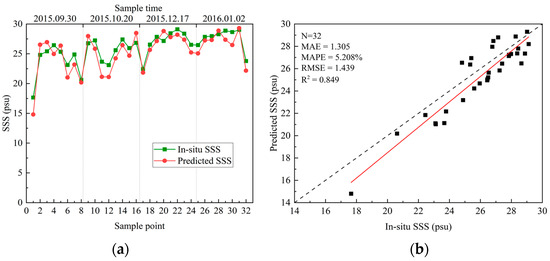It should be noted that the dataset for model training consisted of 26 samples collected in May and 58 samples collected in November. The absence of data from other months may limit the temporal generalization of the model, meaning that the current findings are most applicable to the specific months of June and November, and may not entirely reflect the full seasonal variability in SSS. Future research aims to enhance the model’s applicability across diverse coastal conditions by incorporating data from different seasons, regions, and climatic conditions to capture a wider range of spatial and temporal variability. To address challenges posed by sparse or irregular signals, particularly during seasonal variations in Qinzhou Bay, Compressive Sensing techniques such as Bayesian and Diffusive Compressive Sensing will be explored to optimize data sampling and reconstruction. Additionally, advanced data fusion techniques and multivariate analyses will be employed to further improve model robustness and prediction accuracy in complex coastal environments. This study will also explore optimization techniques in deep learning and ensemble learning methods, integrating hyperparameter tuning and cross-validation to refine algorithmic configurations and enhance further model performance.