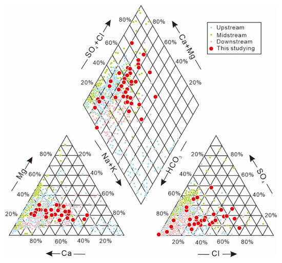 Piper diagram of groundwater chemistry in the Hexian area and Yangtze River Basin, China.
