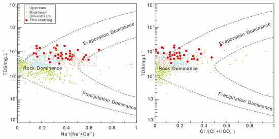 Gibbs diagrams for the classified data into the respective cluster in the Hexian area and Yangtze River Basin, China.