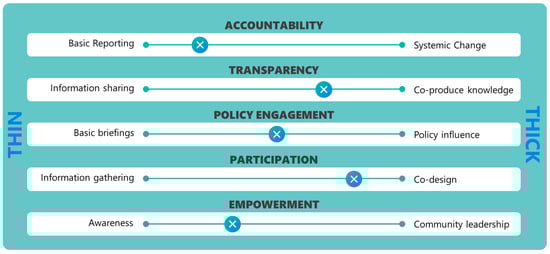 Transparency represents the evolution of information-sharing practices in research, moving from basic dissemination to co-produced knowledge. Teams demonstrated varying levels of engagement with stakeholders, from formal consultation to deeper collaborative relationships.