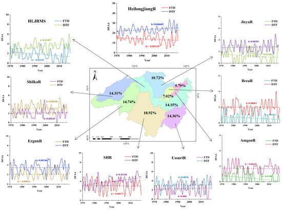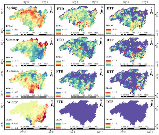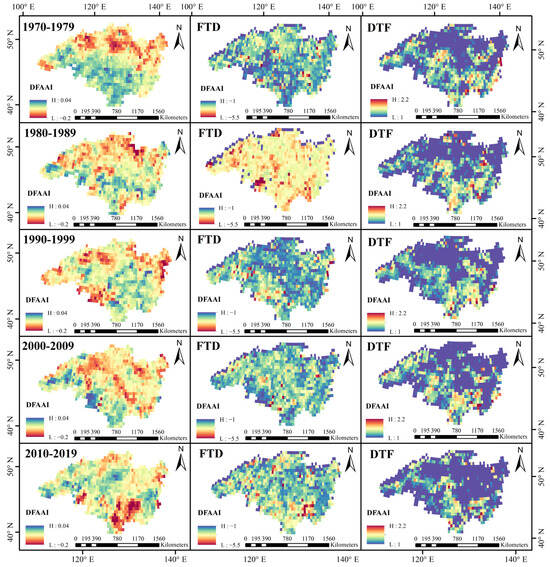 - From 1970 to 2019, the DTF events were most frequent in the SHR and least frequent in the AmgonR, with an upward trend (3.51%/decade). The FTD events decreased (4.52%/decade) over time, were more frequent in northern regions like the ErgunaR and the ShilkaR, and less frequent in eastern areas like the JieyaR and the BreaR. Temporally, events peaked in spring and summer, were concentrated in the south in autumn, and were least frequent in winter. High-frequency areas expanded from the north in the 1970s–1980s into the entire basin. From 2010 to 2019, the DTF events were concentrated in the south and east, while the FTD events showed a decline in the northern high-frequency areas.