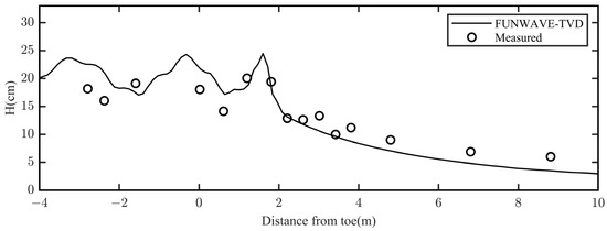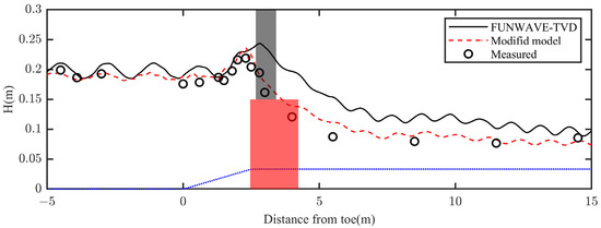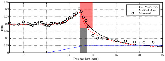 Figure 7 compares the wave heights from the original FUNWAVE-TVD and the modified model with the measured value, along with the