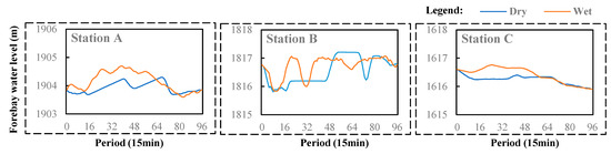 | , | Forebay water levels at the beginning and end of the scheduling cycle of station , respectively (m). |