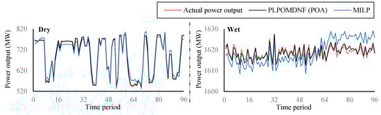 | Objective function value of the short-term optimal scheduling model (MW). | |