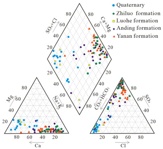 Piper diagram of the ground water of Jurassic strata in the Yuheng mining area.