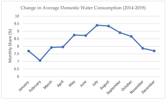 The proportion assigned to each month is calculated as the ratio of each month’s average water consumption and the average total consumption between 2014 and 2019 (Table 6 and Table 7).