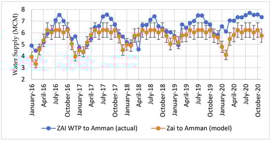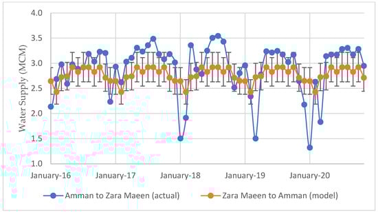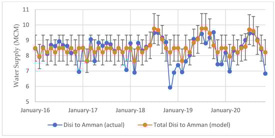 Calculation of monthly variation from the water supply to Amman. All values are in million cubic meters (MCM) [39].