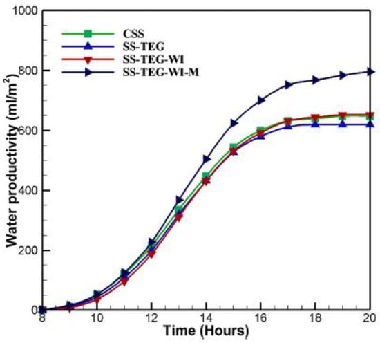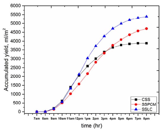 Accumulated freshwater productivity over time for the CSS, SSPCM, and SSLC with time. Reprinted from Ref. [38]. Copyright 2022, Mohammed et al. Licensed under CC BY 4.0.