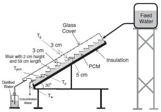 - Dashtban, M.; Tabrizi, F.F. Thermal analysis of a weir-type cascade solar still integrated with PCM storage. Desalination 2011, 279, 415–422. [Google Scholar] [CrossRef]