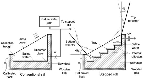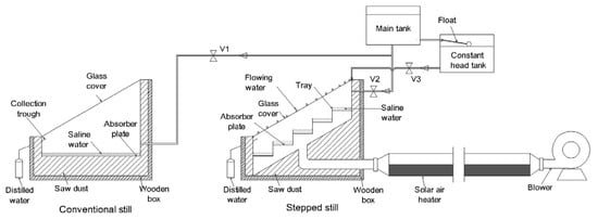 - Abdullah, A. Improving the performance of stepped solar still. Desalination 2013, 319, 60–65. [Google Scholar] [CrossRef]