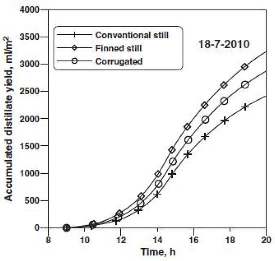 - Omara, Z.; Hamed, M.H.; Kabeel, A. Performance of finned and corrugated absorbers solar stills under Egyptian conditions. Desalination 2011, 277, 281–287. [Google Scholar] [CrossRef]