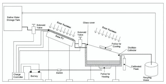 - Esfahani, J.A.; Rahbar, N.; Lavvaf, M. Utilization of thermoelectric cooling in a portable active solar still—An experimental study on winter days. Desalination 2011, 269, 198–205. [Google Scholar] [CrossRef]