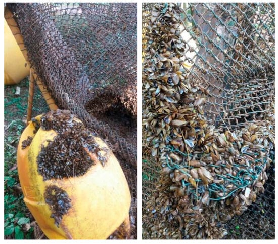 - Besen, M.A.; Marengoni, N.G. Bioaccumulation of metals and evaluation of golden mussels encrusted on different screens of net cages. Bol. Do Inst. Pesca 2021, 47, e624. [Google Scholar] [CrossRef]