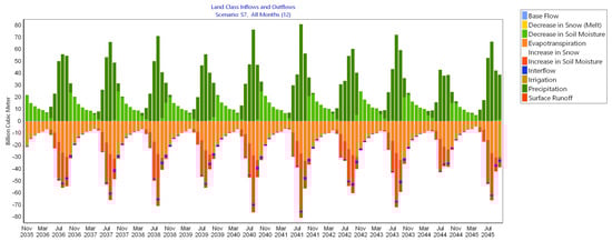 Figure 12. Water balance of the Senegal River basin simulated with the WEAP SRB model for the period 2035–2045. Source: authors’ elaboration.