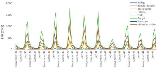Figure 13. Environmental flow requirements for the Senegal River sub-basins simulated with the WEAP SRB model for the period 2026–2045. Source: authors’ elaboration.