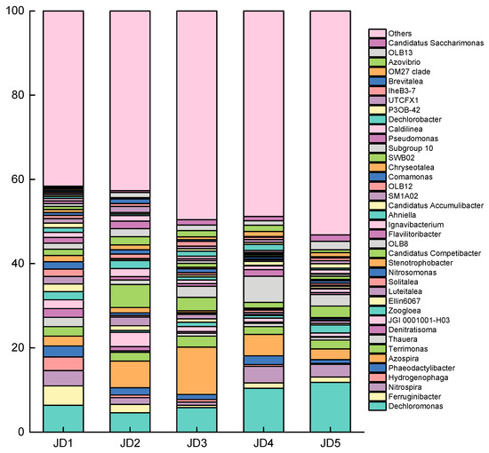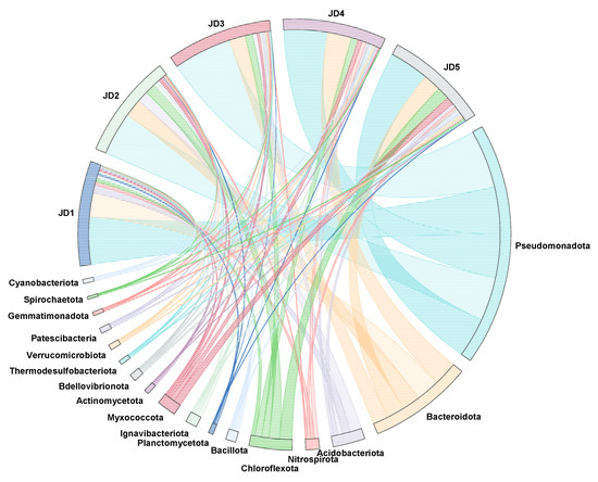 The relative abundance of horizontal microorganisms (JD1, 2, 3, 4, and 5 represent stages I, II, III, IV, and V, respectively).