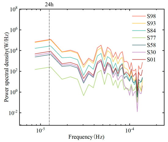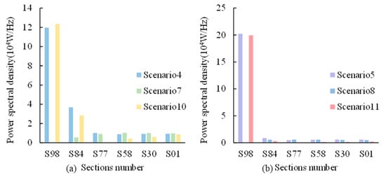 PSDs of the WLFs in typical sections under cascade power station operation in Scenario 10.