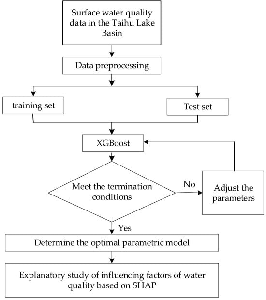 Ultimately, the machine learning model achieving optimal performance is acquired. By employing SHAP for interpretative analysis of water quality influencers, pivotal factors impacting water quality are unveiled. The workflow of the XGBoost-SHAP model is depicted in Figure 1 [44].