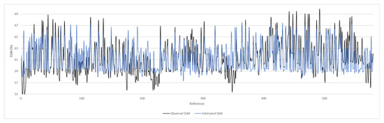 The construction of the Water Cloud Model (WCM) for SSM estimation is based on the criteria established by [58]. They replaced the quadratic expression of vegetation water content (Mv) and soil backscatter (σ° soil) in the WCM equations. Additionally, the term exp(−2B.Mv.secθ) was expanded using the Taylor approximation, enabling the development of a semi-empirical model for soil moisture estimation, expressed as [58].