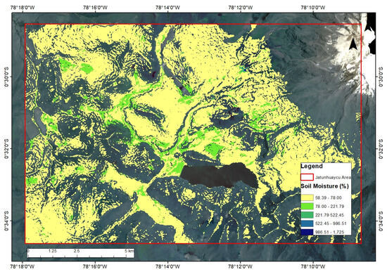 According to the Water Protection Fund (FONAG for its acronym in Spanish), wetlands are characterized by floodable grasslands with the presence of cushions associated with bodies of water and areas susceptible to flooding. In Ecuador, efforts to classify and delineate wetlands primarily relied on the use of multispectral images, starting with Coverage and Use Map with an Ecosystem Approach [13]. This mapping defines the category “Bofedales Altoandino Paramuno”. Later, in 2013, the ecosystem classification system of Ecuador introduced the “Herbazal inundable de Páramo” ecosystem (HsSn04) [14,15], described as areas with cushion plants associated with water bodies and flood-prone zones, including peatlands and swamps. In 2022, FONAG developed the project “Generation of a Map of Ecosystems, Vegetation Cover, and Land Use of the Metropolitan District of Quito—DMQ at a scale of 1:10,000 and Reference Multitemporal Analysis with Existing Maps”, using 4287 multispectral images (Planet) from 2021 and 2022 with a spatial resolution of 2.5 m and generating a mosaic in such a way that the percentage of cloud cover is less than 8%; the project determined that the “Herbazal inundable del Páramo” (wetlands) accounts for 1.58% of the ecosystem surface area within the DMQ [15]. The Ministry of Environment, Water and Ecological Transition (MAATE) estimates that páramo wetlands represent approximately 1% of the total area. However, recent mapping using multitemporal remote sensing information and a combination of multisensor radar and multispectral imagery combined with a Digital Elevation Model (DEM) suggests this value is closer to 5–18% [5,16].
