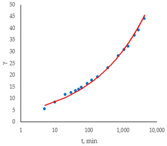 Variation of the GED scale parameter γ as a function of rainfall event duration t for the Zielona Góra pluviograph record (1951–2020).