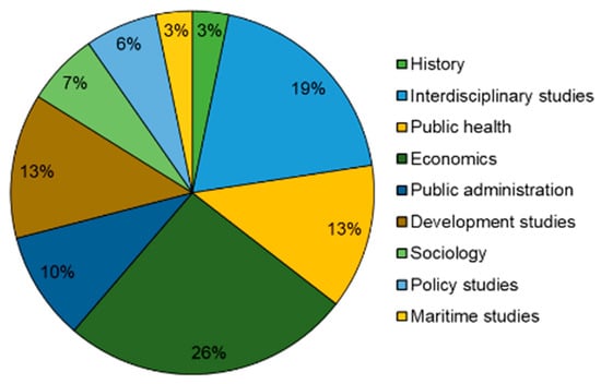 Lastly, maritime studies and history, each with 3% distribution in the discipline, studied the volume of oil spills in seas with high maritime traffic and the establishment of oil fields [37]. Social sciences bridge the gap between ecological and real-world applications by emphasizing social, economic, and political dynamics. Filling in the gaps in studies would give a more holistic view of mitigating impacts from this man-made disaster.