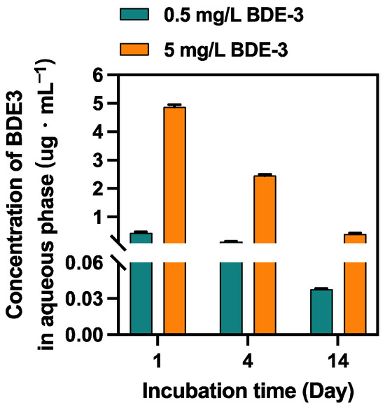 Concentration of BDE3 in aqueous phase during 14 days incubation (n = 3).