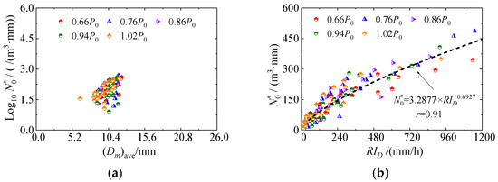 Statistical Characteristics of the Atomized Raindrop Spectrum. (a) Correlation analysis of log10()–(Dm)ave; (b) –RID under a series of test conditions.
