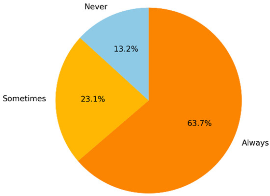 The primary source of drinking water for most respondents was boreholes (53.8%), followed by purchased water (30.8%) and piped water (15.4%). Notably, none relied on wells, rivers, or rainwater harvesting (Table 2). This highlights a dependence on groundwater and commercial water vendors, which reflects both infrastructural gaps and economic constraints. This study makes it clear that water scarcity is a persistent and widespread challenge. The majority (63.7%) of respondents reported that they always experience water scarcity, 23.1% sometimes, and only 13.2% never (Figure 4). This pattern is consistent with studies in regions facing chronic water stress, where persistent scarcity is the norm rather than the exception, thus emphasizing the urgent need for sustainable solutions and interventions to improve water access and reliability. Such a high prevalence of constant water scarcity suggests that coping mechanisms are stretched to their limits, and that resilience is likely eroding.