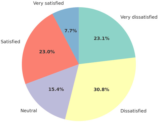 The survey data reveals significant public dissatisfaction with drinking water quality, with a combined 53.9% expressing dissatisfaction (23.1% very dissatisfied and 30.8% dissatisfied) compared to only 30.8% reporting satisfaction (23.1% satisfied and 7.7% very satisfied) (Figure 8). This pronounced discontent underscores systemic challenges in water provision, stemming from inadequate infrastructure, contamination risks, and inconsistent water supply. The high dissatisfaction levels suggest that current water management strategies are insufficient to meet public expectations, potentially exacerbating vulnerabilities to waterborne diseases and socioeconomic disparities. These findings align with broader concerns about Nigeria’s water security and emphasize the urgent need for improved purification systems, equitable distribution, and stricter regulatory enforcement to enhance water quality and restore public trust in water services.