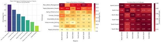 This study offers a novel contribution by adopting a multidimensional framework that combines empirical survey data with thematic analysis to assess public perceptions of freshwater scarcity in Nigeria. It is among the first to triangulate population growth, climate change, and water management challenges using nationally distributed survey evidence. This study not only captures regional disparities in water access but also evaluates how these challenges are experienced differently based on demographic and geographic factors. Furthermore, it advances the discourse by aligning findings with policy and infrastructure solutions aimed at building climate-resilient water systems. By centering community voices and combining them with systemic and environmental insights, this research provides actionable, evidence-based recommendations for sustainable water governance in Nigeria.