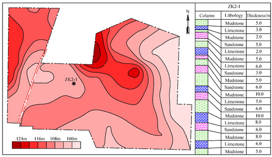 The distance between the 3# coal seam and 15# coal seam is 92.1–138.7 m, with an average of about 106 m (Figure 3). The interlayer strata are mainly limestone, mudstone, and sandstone, in which limestone and sandstone are aquifers, and mudstone is aquiclude.