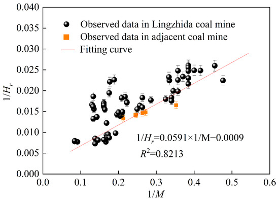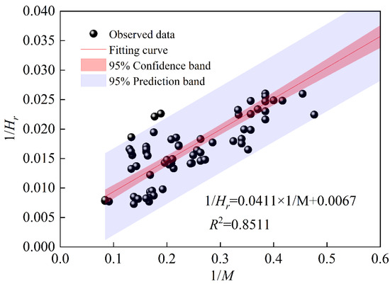 In Equation (8), there is a linear relationship between 1/Hd and 1/M. The fitting of the relationship is shown in Figure 8.