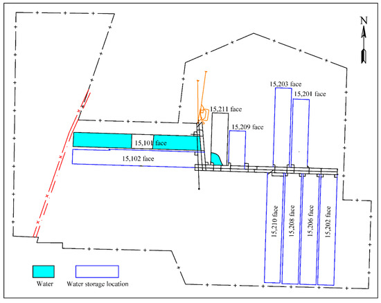 The goaf of an upper coal seam group is highly susceptible to the accumulation of substantial amounts of water, which presents a significant threat to the safe mining of the underlying coal seams [1,2]. According to statistics, over 70% of permeability accidents in mines are attributed to water accumulation in the goaf areas [3,4]. A notable example occurred on 29 November 2020, at the Yuanjiangshan Coal Mine (Yuanjiangshan Coal Industry Co., Ltd.; Hengyang, China), where a major water-inrush accident resulted in 13 fatalities. The cause was traced to the accumulation of water in the upper section of the −350 m goaf during mining of the 61 coal seam at the −500 m level [5]. Similarly, on 10 April 2021, a major water leakage accident at the Fengyuan Coal Mine (Xinjiang Agricultural Sixth Division Coal and Electricity Co., Ltd.; Changji, China) led to 21 deaths. The incident was triggered by the excavation of the B4W01 return airway, which unintentionally connected with the old goaf water from the adjacent Baiyangshu Coal Mine [6]. On 1 June 2024, a water-related accident occurred at the Huafeng coal mine (Shandong Energy Xinwen Mining Group Co., Ltd.; Taian, China), resulting in three deaths. The cause was the accumulation of water in the 11,105 goaf during mining operations at the 11,106 working face [7]. These incidents highlight the critical need for research focused on the safe mining of coal seams in conditions where water accumulation in the goaf poses a risk.