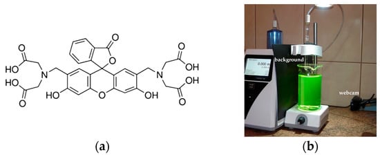 This work describes the optimal lighting conditions and color parameters for recording sharp endpoints with a digital camera, using calcein as an indicator. Calcein is a typical calcium-sensitive indicator used in complexometric titrations [,,,,]. It has been proven that the optimal selection of measurement conditions for a webcam allows for the precise determination of calcium in water solution.