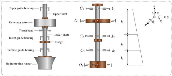 - Sun, W.; Guo, Z. Mathematical modeling and nonlinear vibration analysis of a coupled hydro-generator shaft-foundation system. Commun. Nonlinear Sci. Numer. Simul. 2021, 98, 105776. [Google Scholar] [CrossRef]