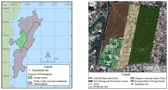 Roof location: (a) in relation to Florianópolis regions, and (b) regarding its vicinity areas.