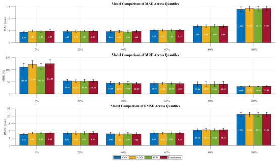 Figure 10. Comparison of error metrics across precipitation intensity quantiles for different models.