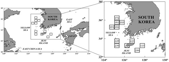 Previous studies on the feeding ecology of S. japonicus in the North Pacific have primarily focused on the Yellow Sea, the South Sea, and the waters around Jeju Island in Korea, and research in Japan has mainly been on the Satsunan and Seto Inland Sea regions [16,17,18,19,20,21]. Hence, comparative studies on prey composition that account for spatiotemporal variability across different habitats remain limited. Investigating the diet composition and feeding characteristics of S. japonicus in the Jeju and Yellow Sea regions can reveal the patterns of regional prey utilization and highlight the differences in the primary prey species. The findings can contribute to a more comprehensive understanding of the ecological role of species and their interspecific interactions within marine ecosystems. Therefore, the present study aimed to identify the major prey species of S. japonicus in the Jeju and Yellow Sea regions and comparatively analyze the composition of the stomach content according to ontogenetic stages and seasonal variations.