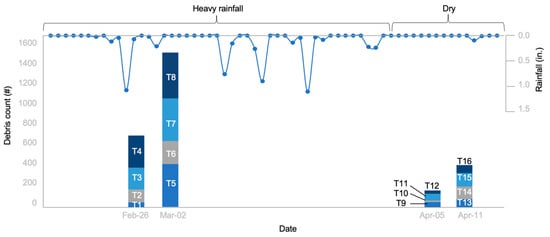 | 26 February 2023 | 3–5 p.m. PT | Heavy rainfall | 54 °F, mostly sunny, wind 7 mph E, humidity 58% | Along shoreline, cleaner | T1 | 50 | 4.2 |
