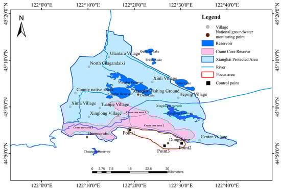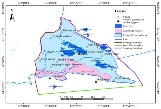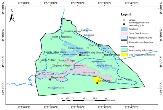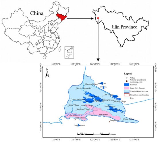 Located in Tongyu County, Baicheng City, in Northeast China, the Xianghai nature reserve is uniquely positioned in the heart of the vast Korqin Grassland. Its geographical coordinates range from 122°5′19″ to 122°31′38″ east longitude and 44°55′ to 45°09′ north latitude, covering an area of 1054 km2. The overview of the study area is depicted in Figure 3.
