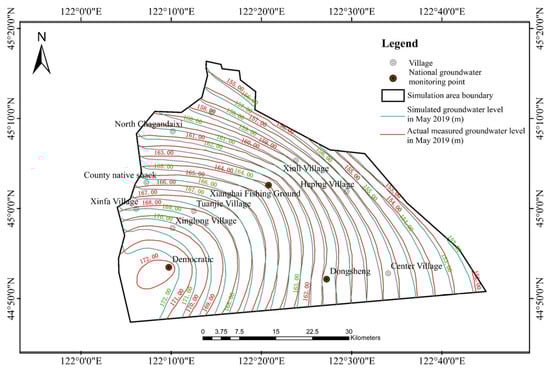 - Based on natural geography, geology, and hydrogeological conditions, a hydrogeological conceptual model was established. Subsequently, a mathematical model was developed and solved using MODFLOW. This model was then subjected to identification and validation.