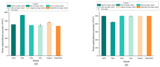 The total replenishment volume of the optimal replenishment plan is 7446.78 × 104 m3. The results of the replenishment plan are shown in Table 10.