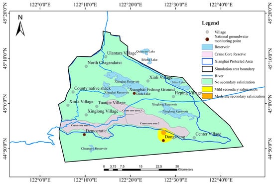 Wetlands are one of the most important ecosystems on Earth, playing irreplaceable roles in water purification, climate regulation, and the protection of biodiversity [1,2]. In recent years, influenced by natural processes and irrational human exploitation of water and soil resources, the water resources upon which the wetlands of Xianghai depend have diminished, leading to severe degradation. It is urgent to enhance the protection of the Xianghai wetlands [3,4,5,6,7]. As wetland environmental protection methods rapidly evolve, ecological water replenishment has increasingly become one of the main ecological restoration strategies used to prevent wetland degradation and promote ecological succession in wetlands [8]. However, artificial water replenishment in wetlands inevitably leads to salinization. The groundwater level rises with artificial replenishment. Under intense evaporation, the elevated groundwater level increases the salinity of the soil surface, creating conditions for secondary salinization [9,10]. Therefore, to minimize the adverse effects of wetland replenishment on the surrounding environment, it is essential to simulate the replenishment to predict its impact on the environment, design ecological replenishment schemes, and select the optimal replenishment strategy, which is an indispensable part of the entire replenishment process.