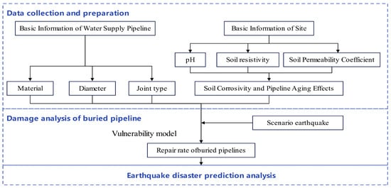 This section details the complete process of earthquake disaster prediction work, as shown in Figure 1. It is intended to provide engineers and related researchers with a set of practical operational guidelines. These guidelines aim to effectively assess and predict the extent of damage that buried pipelines may suffer in an earthquake. The specific steps are as follows: