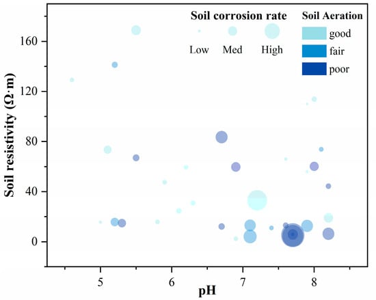Soil corrosivity refers to the ability of the soil to corrode metals and alloys. Differences in soil corrosivity in different areas result in varying levels of corrosion of existing metallic buried pipelines, which affects the seismic performance of the pipeline. Therefore, pipelines with extensive corrosion are more likely to be damaged in an earthquake.