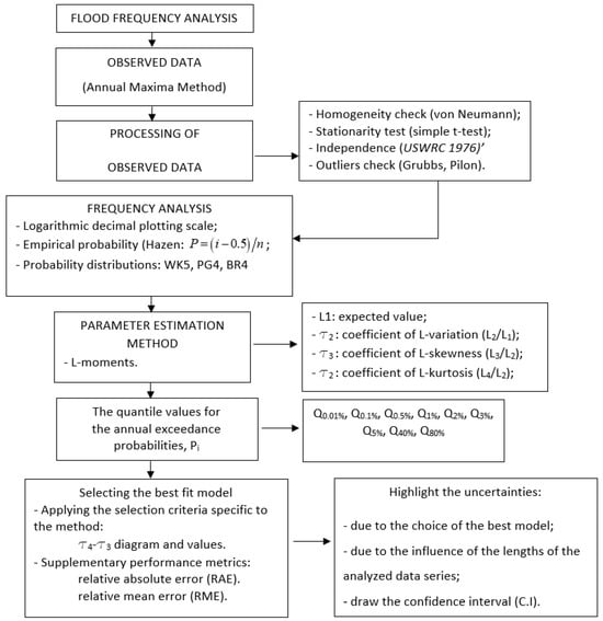 Finally, this study represents a part of a broader effort aimed at identifying the most appropriate statistical distributions and parameter estimation methods for the frequency analysis of maximum flows in Romania [33,57]. The findings will contribute to the development of new national guidelines, including the creation of open-source automated tools to support these analyses.