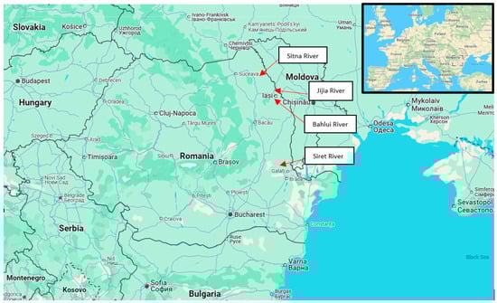 Positioning of the Siret, Bahlui, Jijia, and Sitna Rivers, in Romania.